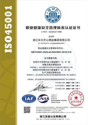 公司始終堅持生產(chǎn)高性能不銹鋼管的產(chǎn)品定位,持續(xù)改進品質(zhì)。先后取得了不銹鋼管特種設(shè)備(壓力管道元件)認證等多張生產(chǎn)許可證,并通過ISO9001:2015質(zhì)量管理體系、ISO14000:2004環(huán)境管理體系認證、GB/T28001-2011職業(yè)健康安全管理體系認證。